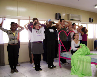 Drama Club durante ensaio: grupo apresenta o musical Mamma Mia!