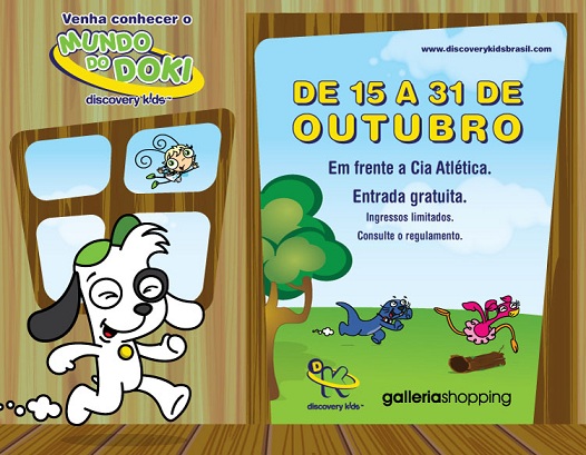 De 15 a 31/10 as crianças poderão se divertir no Galleria Shopping com o evento “Mundo do Doki”, do Discovery Kids.