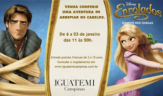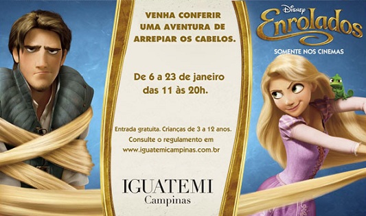 O Shopping Iguatemi Campinas recebe, desta quinta (06/01) a 23 de janeiro, o evento temático do filme de animação “Enrolados”, acompanhando o lançamento da mais nova produção da Walt Disney Pictures.