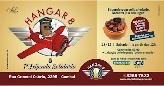 Neste sábado (18/12) o público de Campinas tem um encontro com a solidariedade. Trata-se da 1ª Feijoada Beneficente do Hangar 8, no Cambuí. O evento reverterá parte da renda obtida com a venda dos convites para a ONG SOS Pequeninos.