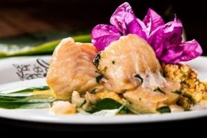 Bar do Marcelino – abadejo na folha de bananeira com ervas frescas ao perfume de moscatel, acompanhado de cuscuz marroquino
